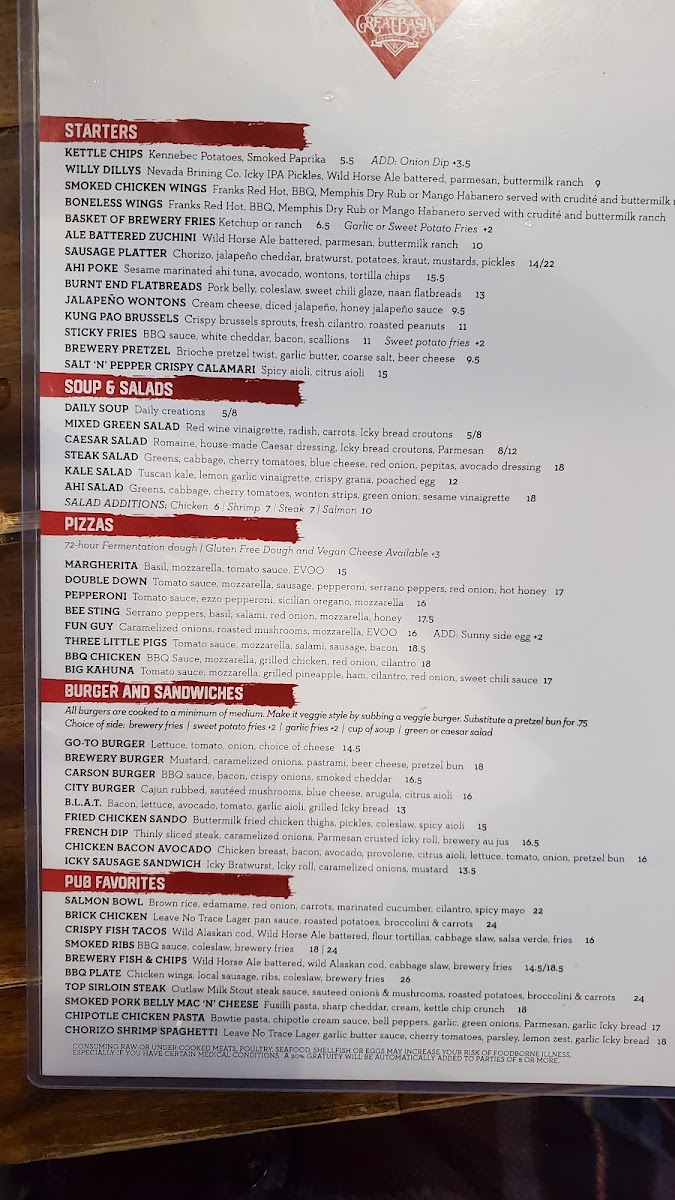The ambiance at Great Basin Brewing Company is lively yet laid-back, perfect for relaxing with friends or family. With great outdoor seating that welcomes dogs, it’s an ideal place for pet lovers to enjoy a savory meal on a pleasant day. Whether seated at the bar or in a cozy corner, expect attentive service, as reflected in one visitor's delight at the staff's responsiveness and suggestions. Quick seating even for large groups enhances the sense of community that this brewpub fosters.